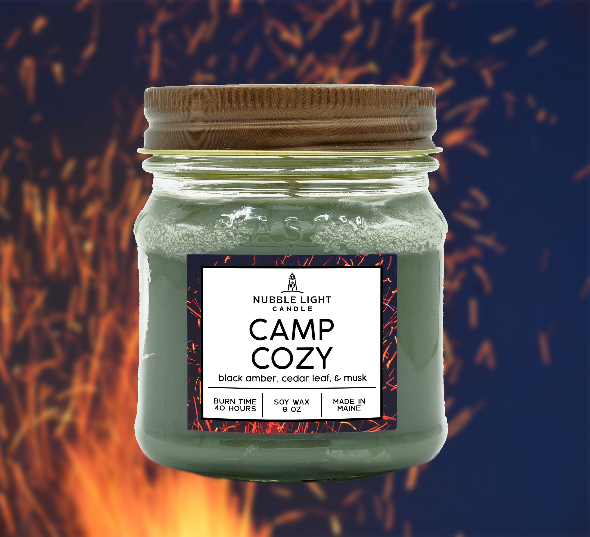 Camp life is such an important part of life in New England. No season is complete without taking at least one trip "up" camp for a peaceful and private retreat. With CAMP COZY, you can escape anytime. Notes of earthy amber, fresh cedar, and complex musk, create an intoxicating, masculine scent that fills the room with a warmth like a big cozy blanket.
